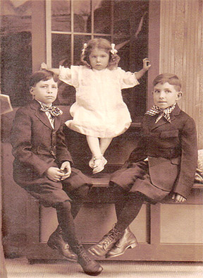 | The Paffords Go To SchoolMarion and Clinton were quite a bit older than Leona. The two boys went to school first at Woodman Hall. This school was inconveniently located across the Palo Duro east of the Range store. When the rivers were up, kids were unable to get to school, even on horseback. A new school called Hominy (later Range) School was built near the Range Dam which provided ice skating in winter. Later the building became a church. |